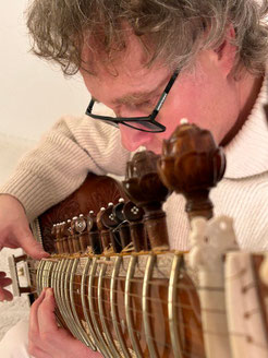 Ein Abend mit indischer Musik, gespielt von Gernot Blume auf der Surbakar (Bass-Sitar)