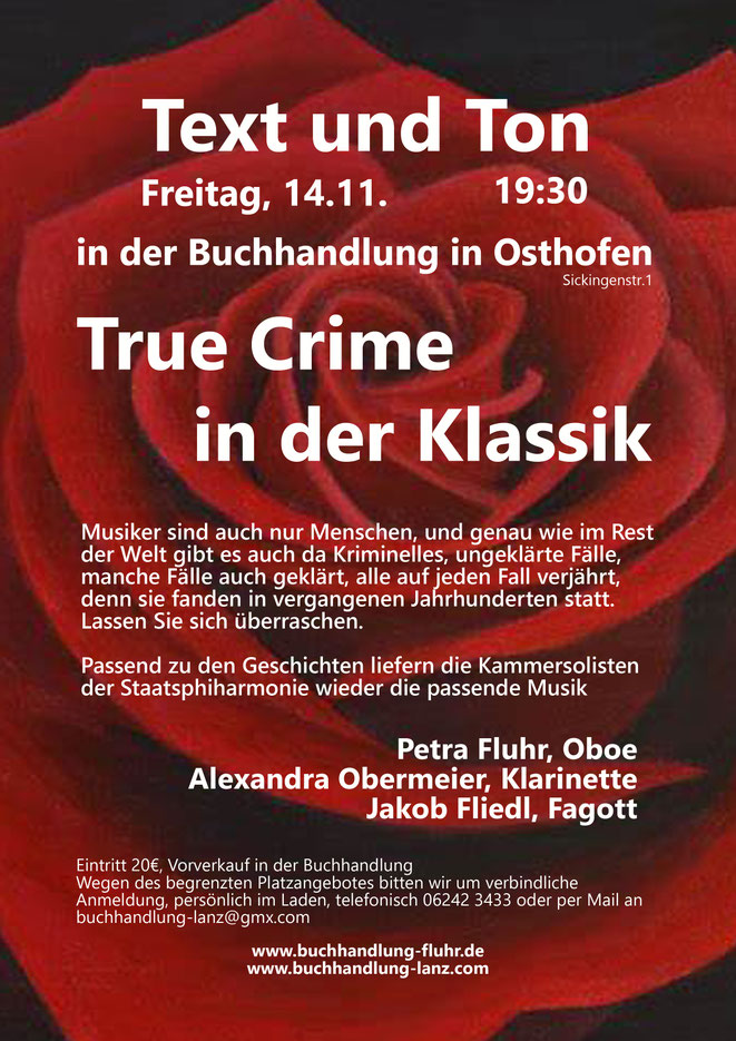 Da das Platzangebot im Laden begrenzt ist, müssen wir uns auf verbindliche Anmeldungen verlassen können. Leider hat in letzter Zeit das "Ghosting" überhand genommen. Für die, die nicht wissen, was das ist: anmelden und dann einfach nicht erscheinen. In einem so kleinen Rahmen fällt das sehr auf, und den Künstlern gefällt es nicht wirklich. Wenn ich sie schon überreden kann, hier für uns exklusiv und für wirklich wenig Gage aufzutreten, möchten wir uns auf unser Publikum verlassen können.